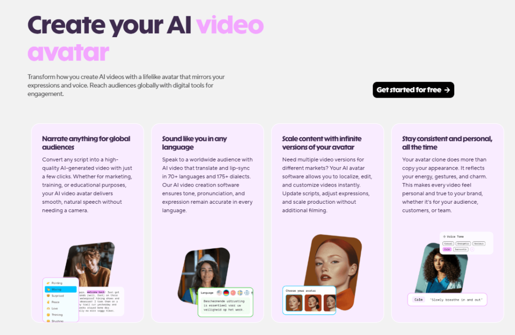 Más allá de las plantillas, la función que más valor aporta a nivel estratégico es la creación de un avatar propio. Aquí no se trata solo de elegir un modelo atractivo, sino de construir un gemelo digital que encapsula la identidad real de una persona, su imagen, su voz, su manera de expresarse y esos pequeños gestos que generan confianza.